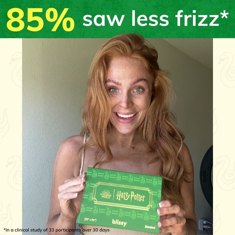 Harry Potter fans know all about unruly hair. Blissy's smooth silk creates 43% less friction than cotton, dramatically reducing frizz and breakage. 85% of users reported less frizzy hair – giving them the magic of more time in their day without hair battles.