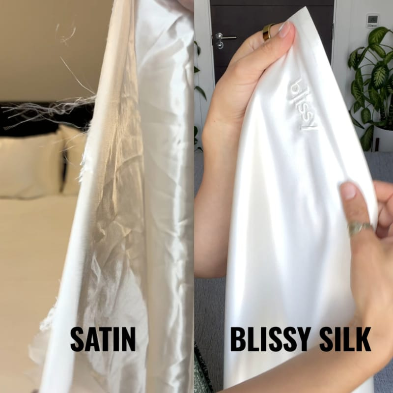 Blissy is made from 100% pure mulberry silk, the highest grade available, and woven with a rare proprietary technique that only a handful of artisans still practice. This process makes Blissy smoother, stronger, and longer-lasting than any other pillowcase on the market. Unlike satin, cotton, bamboo, or fake silk, Blissy is naturally hypoallergenic, breathable, dermatologist-trusted, and eco-certified. It keeps your skin hydrated, reduces wrinkles, prevents hair breakage, and helps you wake up refreshed. That’s why Blissy has won awards, been featured in top beauty magazines, and earned the trust of over 2 million happy customers.