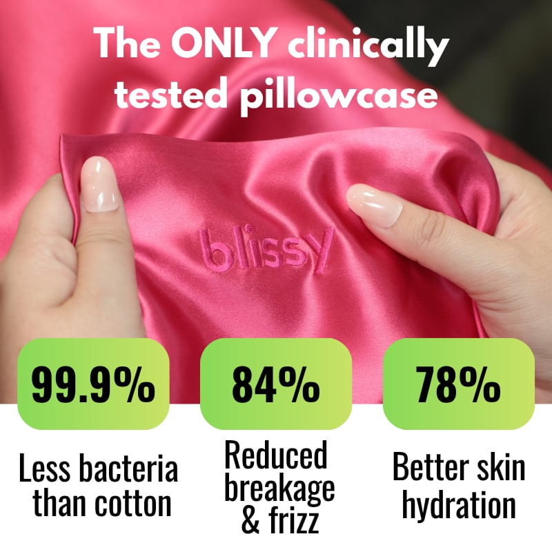 Clinical studies show silk reduces friction by up to 43%, helping to prevent fine lines, breakouts, and hair breakage while you sleep. And it’s not just any silk. Blissy uses 100% pure mulberry silk, carefully engineered for softness, breathability, and lasting quality.